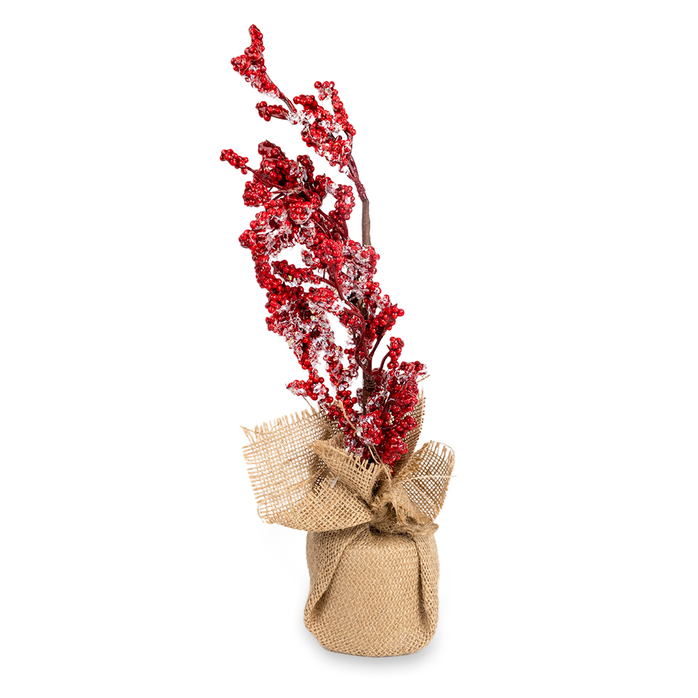 Accesorio Navideño Frutos Rojos Con Base De Yute Ws25