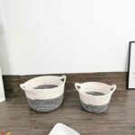 Su forma cuadrada con esquinas redondeadas, cada cesta incluye asas laterales trenzadas para facilitar su transporte. El diseño bicolor aporta un toque cálido y artesanal, ideal para interiores acogedores. Perfectas para almacenar textiles, juguetes o accesorios en cualquier estancia del hogar.