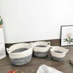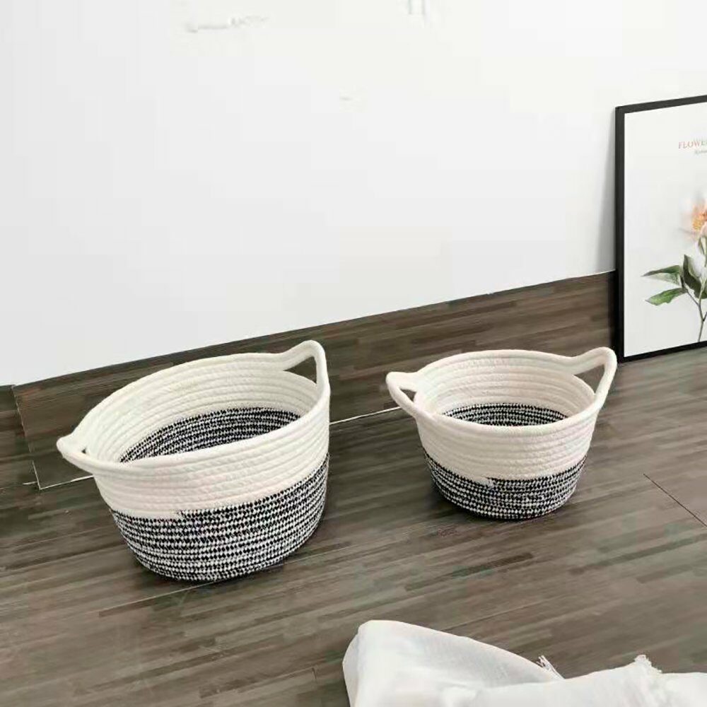Su forma cuadrada con esquinas redondeadas, cada cesta incluye asas laterales trenzadas para facilitar su transporte. El diseño bicolor aporta un toque cálido y artesanal, ideal para interiores acogedores. Perfectas para almacenar textiles, juguetes o accesorios en cualquier estancia del hogar.