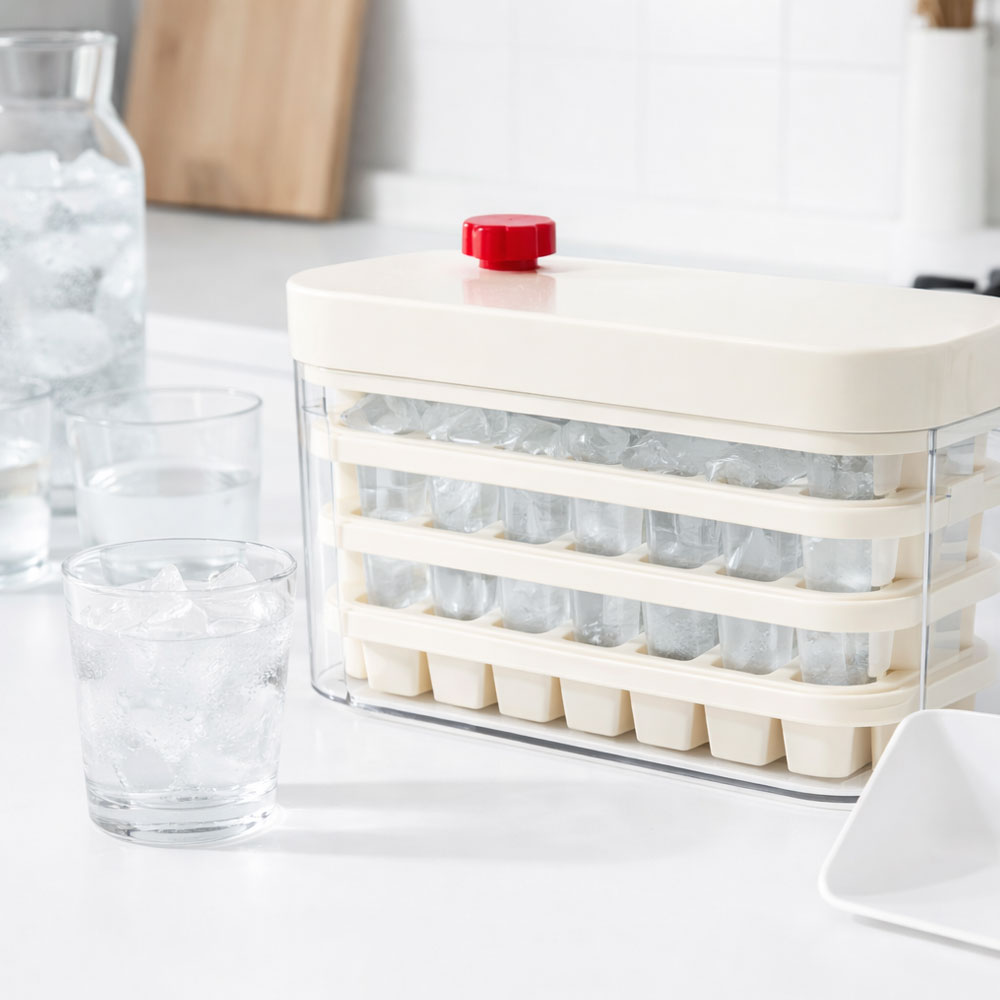 Contenedor Rectangular Con 4 Bandejas Para Hielo 23X12.5X11 Cm En Acrilico Transparente