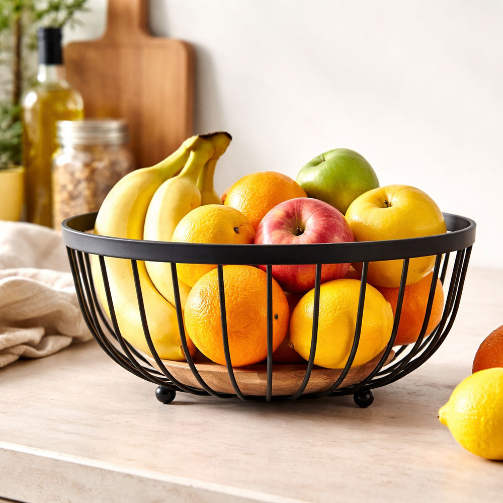 Frutero Redondo Negro 25X12.5Cm De Acero