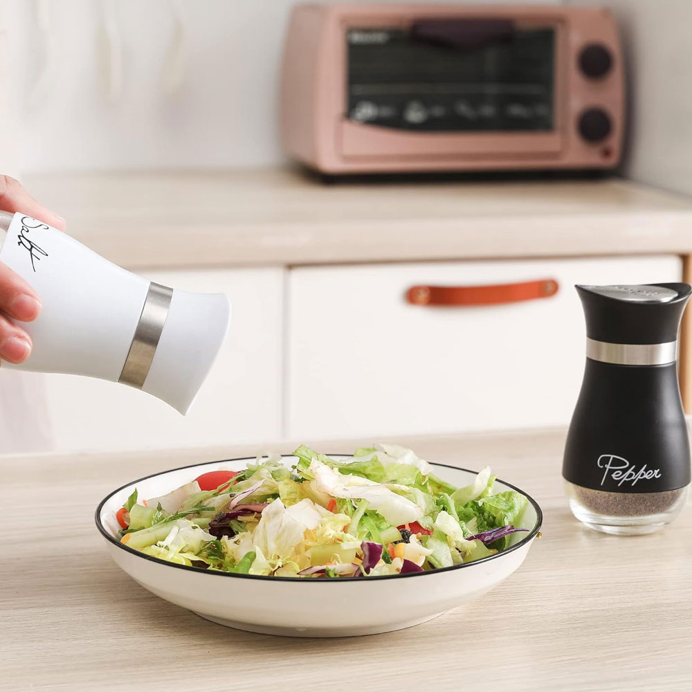 Juego De Salero Y Pimentero Blanco Y Negro De Acero Con Vidrio