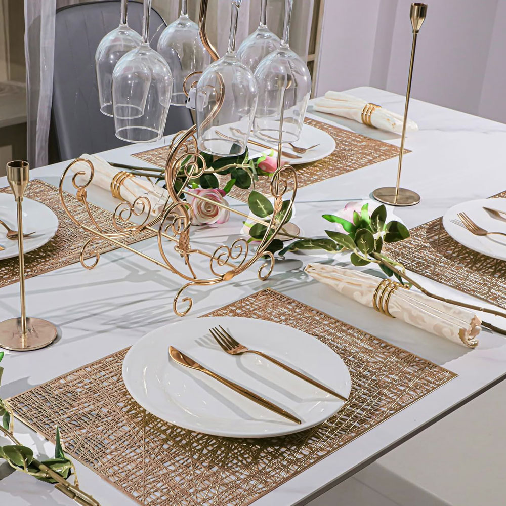 Mantel Individual Cuadrado Rosa Y Plateado 45X30 Cm