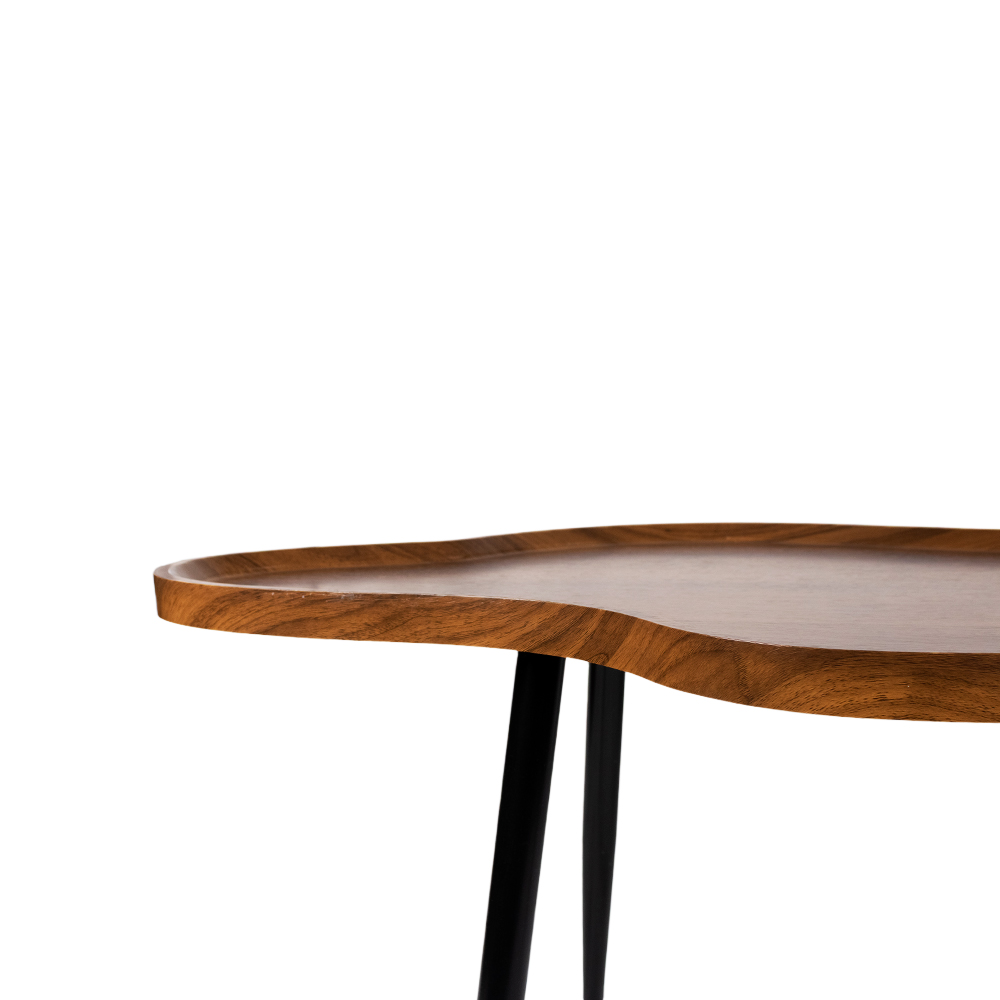 Aprovecha al máximo tus espacios con esta mesa esquinera de forma ovalada. Su diseño estilizado permite colocarla en esquinas sin sacrificar estilo ni utilidad. Perfecta para exhibir decoraciones, colocar lámparas o mantener objetos a la mano.