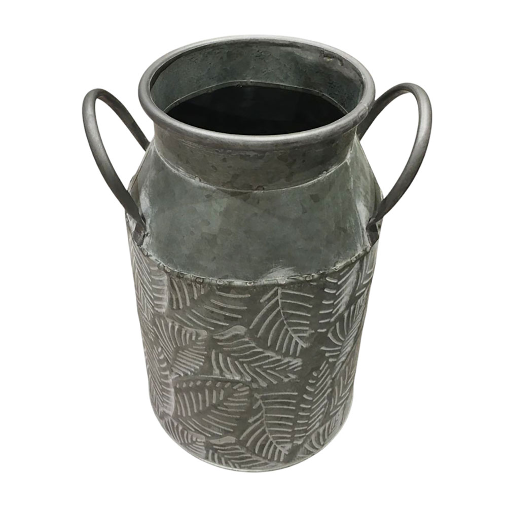 Portamaceta en forma de bote lechero pequeño, fabricado en metal con acabado color gris. Su diseño compacto y decorativo lo hace ideal para interiores, aportando un toque original y encantador a cualquier espacio. Perfecto para resaltar plantas pequeñas y dar un aire creativo y acogedor a tu hogar.