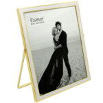 Este portarretrato de estilo moderno y acabado dorado es ideal para realzar tus fotos favoritas con un toque de sofisticación. Su diseño minimalista y elegante lo convierte en un accesorio perfecto para cualquier espacio del hogar u oficina.
