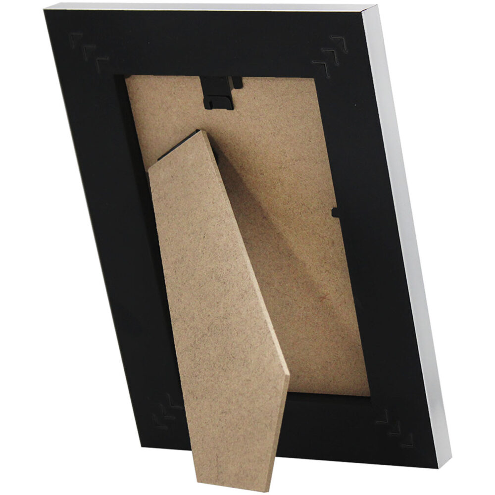 Este portarretrato de estilo moderno y acabado plata es ideal para realzar tus fotos favoritas con un toque de sofisticación. Su diseño minimalista y elegante lo convierte en un accesorio perfecto para cualquier espacio del hogar u oficina.