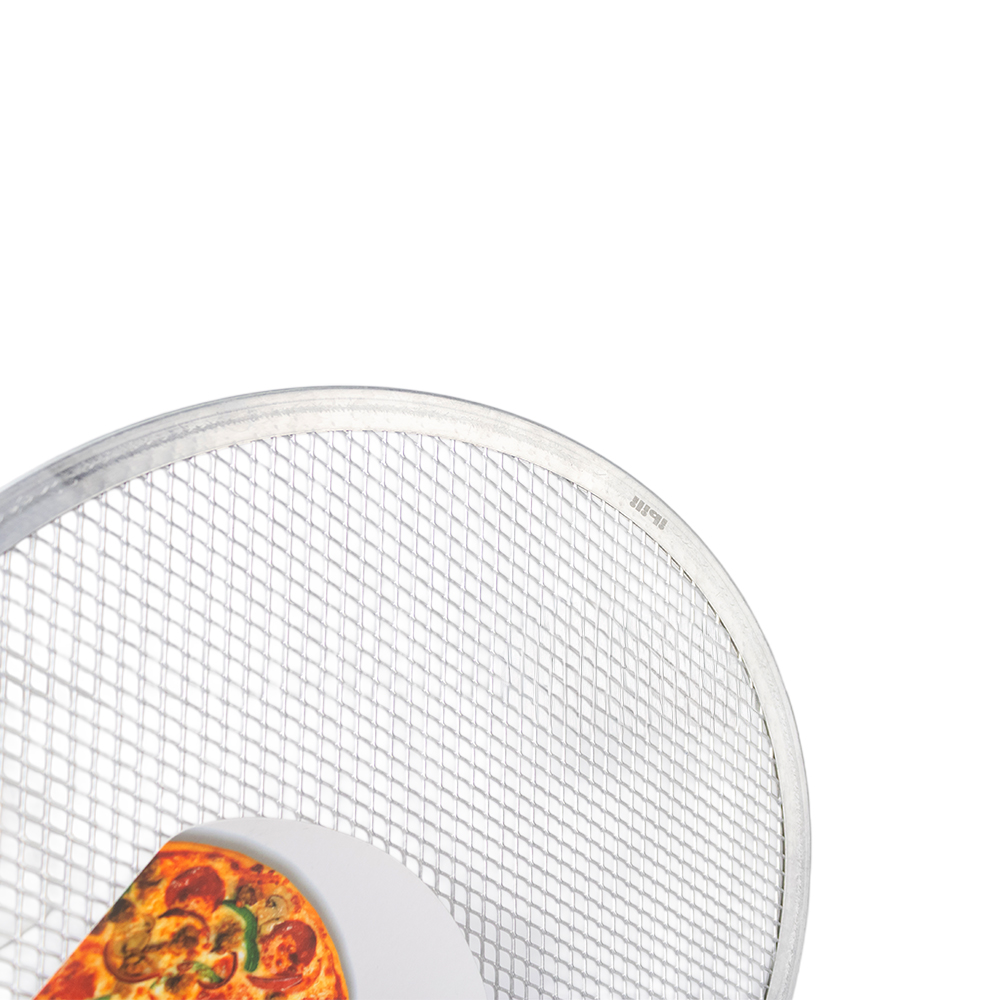 Rejilla para pizza. Permite obtener una cocción homogénea y crujiente de la masa de pizza gracias a la circulación de aire. Muy útil también como enfriador de bizcochos o para descongelar masas y tartas. No apto para lavavajillas. Apto para horno.