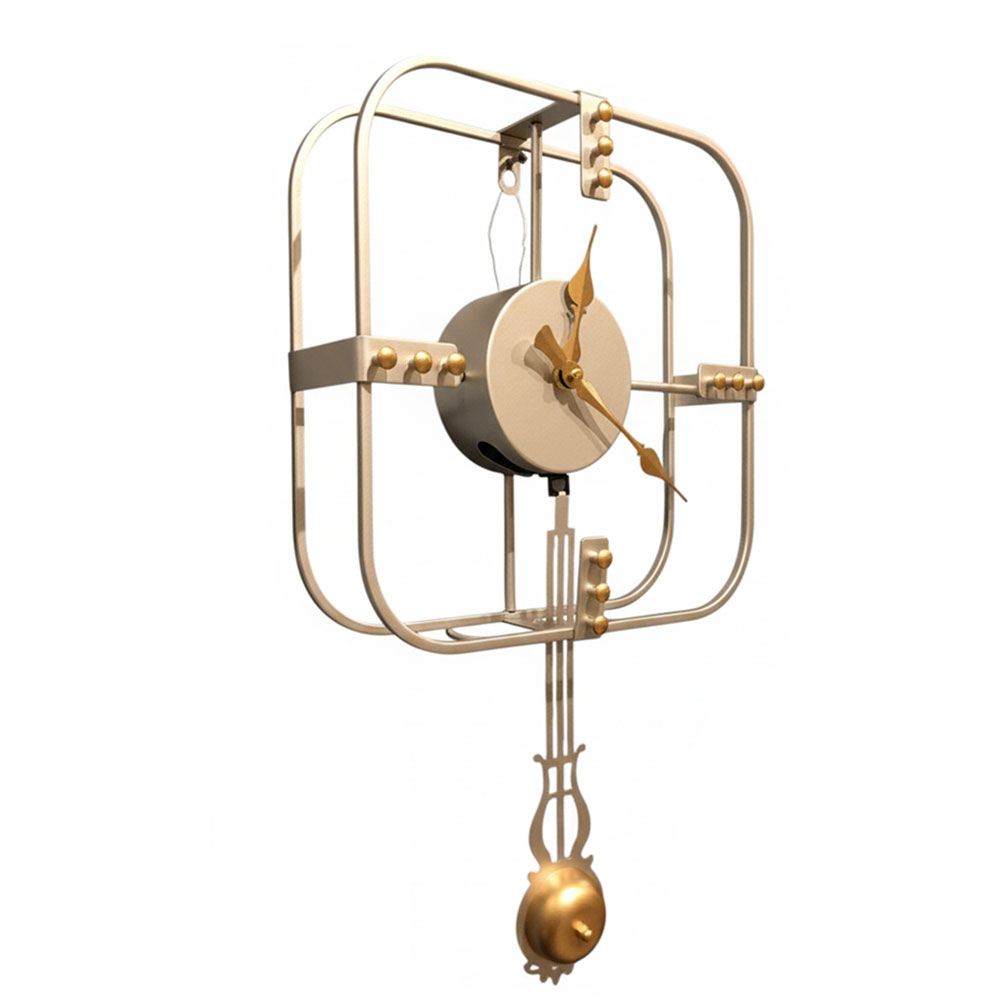 Un reloj de pared con péndulo fabricado en metal creando un diseño moderno y sofisticado. Su acabado en color plata aporta un toque de elegancia atemporal, la ausencia de números refuerza su estética minimalista, convirtiéndolo en una pieza decorativa que transmite sobriedad y distinción. Perfecto para quienes buscan un accesorio funcional.