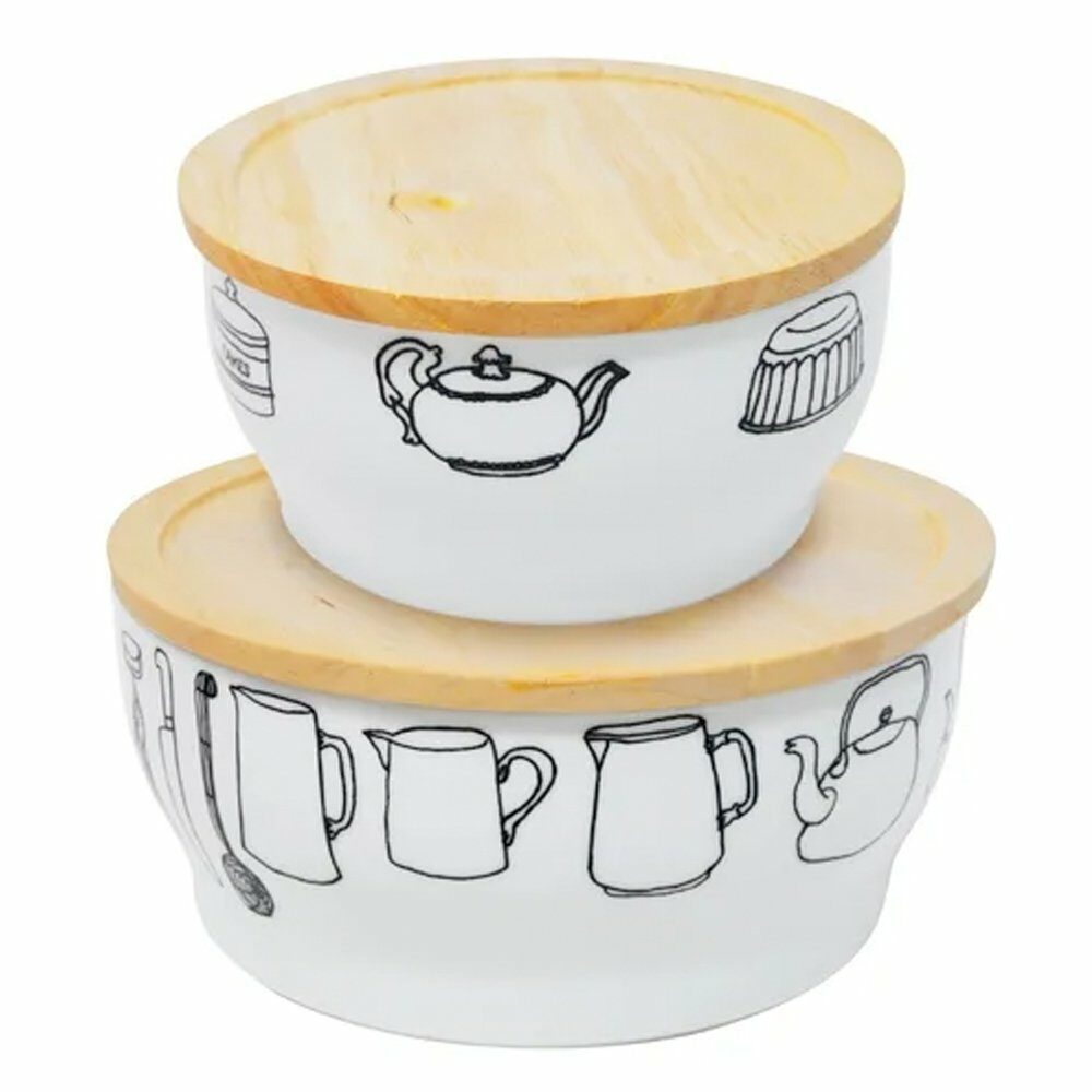 Set de 2 Bowl de Porcelana con Tapa de Madera Top Choice