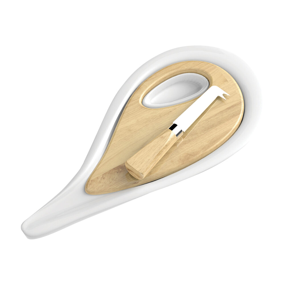 Tabla para Quesos Drop con Cuchillo- Blanco y beige
