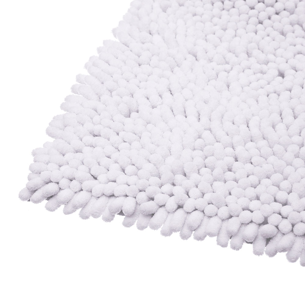 El tapete para baño de chenilla está fabricado en poliéster, un material suave, absorbente y duradero. Su textura de chenilla brinda comodidad al pisar y ayuda a mantener los pies secos al salir de la regadera o tina. Además, su diseño antideslizante aporta seguridad, mientras que su limpieza es sencilla, combinando funcionalidad y estilo en baños principales y medios baños.