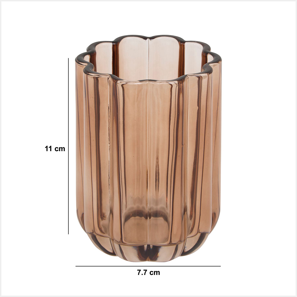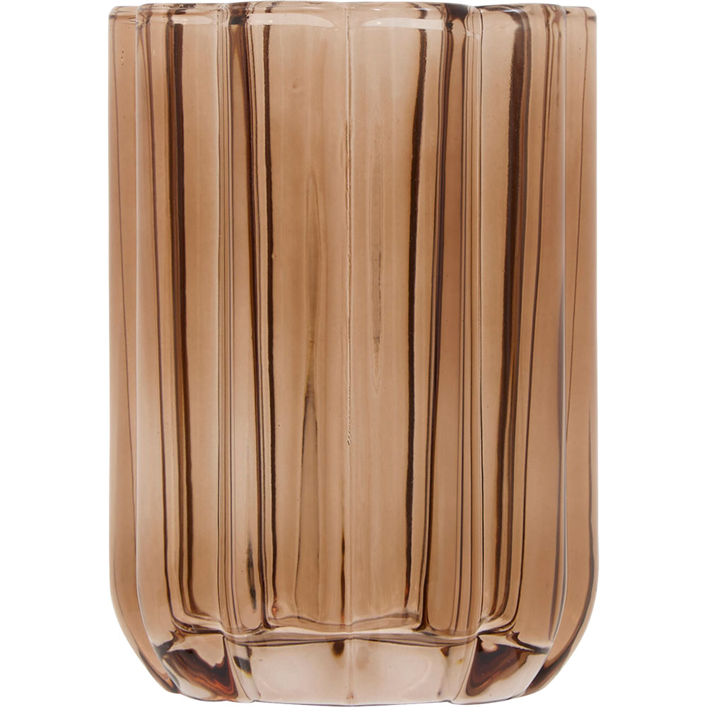Vaso de higiene dental color madera con bambú para guardar los cepillos y la pasta dental, elaborado con poliresina con un acabado superficial elegante y duradero.